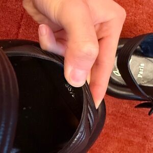 Stylish black sandals with a strappy design. Fully leather and has a nice weight to them. They also are super comfortable and never gave me blisters. Some signs of wear on toe tip and sole.