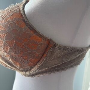 Gorgeous underwire, beautiful lace with pretty pleats bra from Victoria's Secret. Adjustable straps. Sexy orange and tan color. Bombshell Miraculous plunge style. 36B. May show minimal signs of wear.