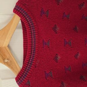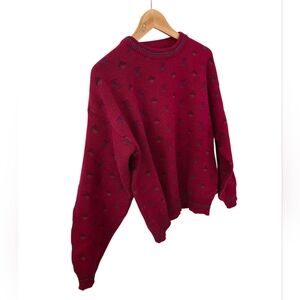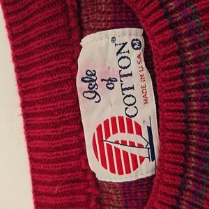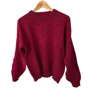 Vintage Isle Of Cotton Pattern Knit Sweater Red Made In USA Size Medium