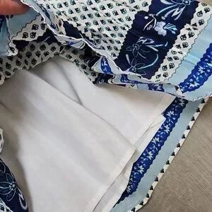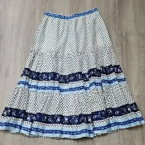Chic maxi skirt with navy and white patterns. Perfect for versatile styling.