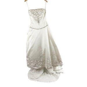 Casablanca Bridal Strapless Embroidered Satin Wedding Dress - Medium