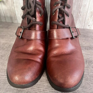 These boots have been barely worn and apart from minor marks and scratches which I tried to show in all the pictures. I just conditioned them to protect them. Size 9.