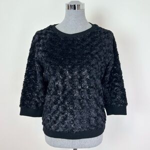 Textured black top from L’AGENCE with ribbed hems and neckline.