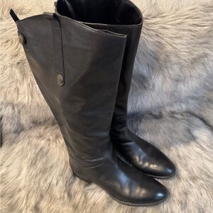 Chic black leather boots by Sam Edelman. Sleek design with button detail. Ideal for stylish outings. In good condition. Approximately a 1 & 1/2” heel.