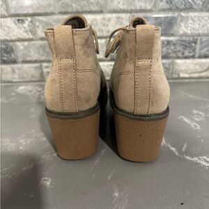 Stylish and comfortable tan , lace up wedge boots. Perfect for versatile wear.