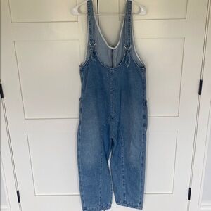 Chic indigo denim overalls. Relaxed fit with spacious pockets. Ideal for casual wear.