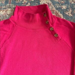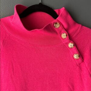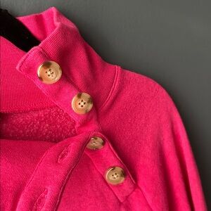 J crew preppy hot pink women’s tops pullover button size medium M women’s sweatshirts athleisure comfy cozy soft winter clothes