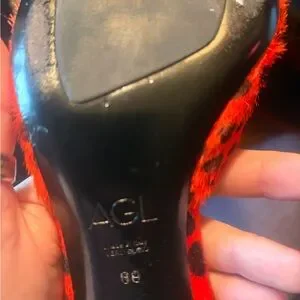 AGL Red Orange and Black Polka Dot Pony Hair Kitten Heels Size 39