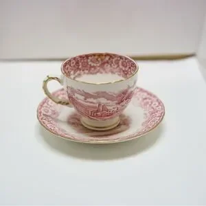 Elegant vintage ceramic tea cup featuring a charming red countryside design. Perfect for adding a touch of classic style to your tea time. No cracks or chips