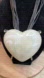 This chic heart pendant necklace features a beautiful cream marbled design, cradled in silvertone, hammered metal. On a 12 strand black cord with a lobster claw clasp.