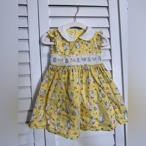Baby Toddler Girl Yellow Kids Smocked Dress with Bunny Print Size 18 month