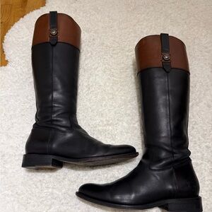 EUC Frye Melissa Leather Equestrian Women’s Tall knee high Boots Sz 11 Blk/Br