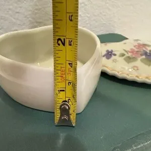 Vintage Fred Roberts Co. Heart Shape Trinket Dish w/ Pink & Purple Flowers