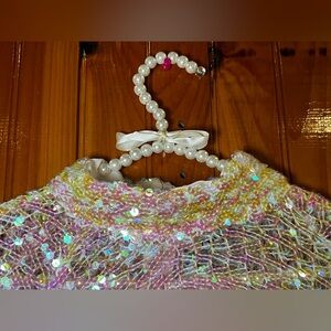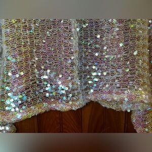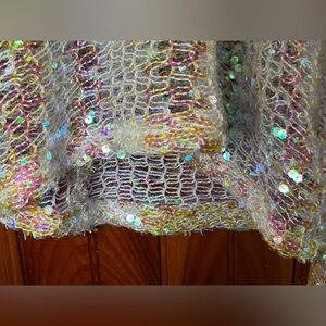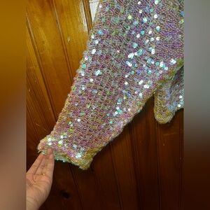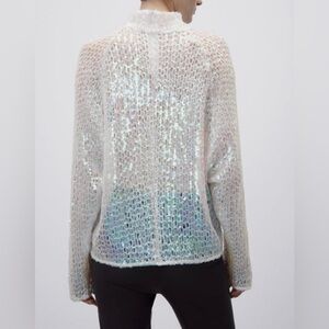 Brand new w/ tags, ZARA sequins sweater white w/ iridescent sequins that change from a clear to a light golden & pink color depending on the lighting. Has a higher neck that zips in the back.