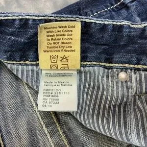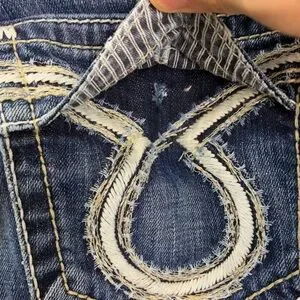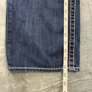 Missing back right pocket button. Otherwise these jeans are in excellent preowned condition. No stains, holes or tears.