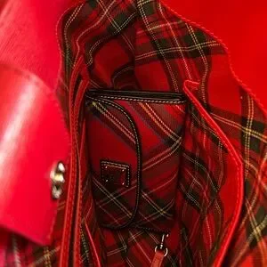 Tote measures ~12Hx15Wx4D. Dooney wallet is included, and perfectly compliments the tote’s festive lining.