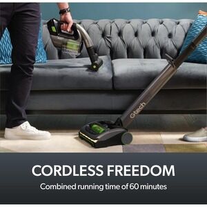 Features: AirLOC technology powered floor heads to maximise cleaning performance, self propulsion Forward Inertia drive that helps the upright propel itself forwards, LED headlights to expose hidden dust and dirt, large capacity easy-empty bins, cordless freedom with a combined running time of up to 60 minutes, lightweight and versatile design for use around the home and in vehicles.