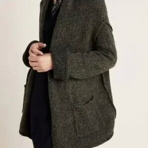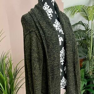 Stay warm and stylish in this EUC must-have Anthropologie open-front cardigan! Perfect for layering over any outfit, this sweater offers a relaxed, oversized fit and a rich, marled olive green color that goes with everything. This piece is perfect for fall and winter layering and a classic addition to any wardrobe!