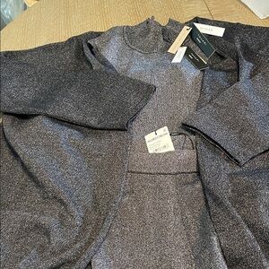 Elegant Tahari knit wide leg pants with METALLIC SHIMMER GLAMOUR! Wide comfort waistband, flowing wide leg. These match the Tahari open kimono jacket. Lovely evening cruise party dinner look!