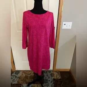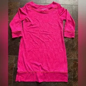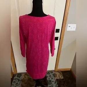 Lands’ End Cerise pink celestial geo tunic swim cover up dress. Size small
