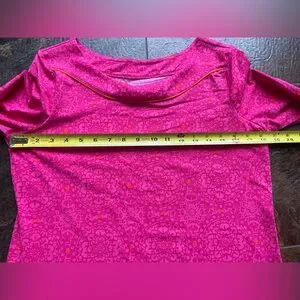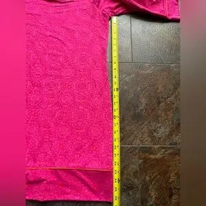 Women’s Lands’ End cerise pink with orange trim geo medallion tunic swim cover up dress. Nylon/ spandex blend for comfort, UV protection, pull over and small split bottom hem for easy movement. Size small 6-8. Pre owned. Good condition. Has a pulled loose thread on bottom hem, no ripper hole. See photos for measurements and flaw. Swim, athleisure, cover up, summer, resort wear, beach, vacation, pool