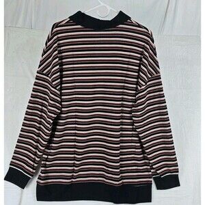 Nenoná Striped Long-Sleeve Polo Rugby Top Women’s Black Red White Rib Knit XL