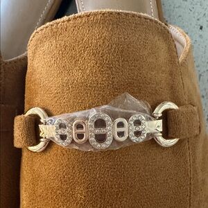 Camel Suede Mules with Gold Buckle NWB