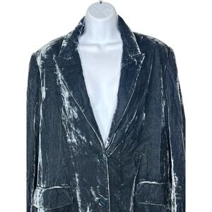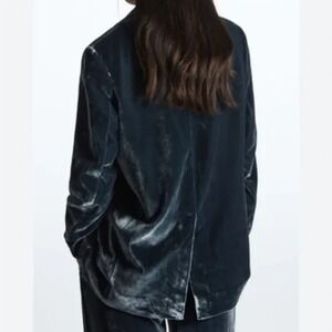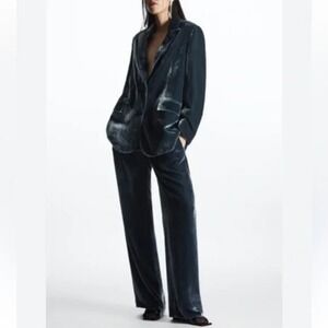 COS Crushed Velvet Silk Rayon Blazer Deep Blue Oversized Holiday Party Sz 10