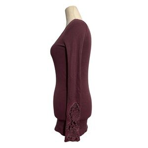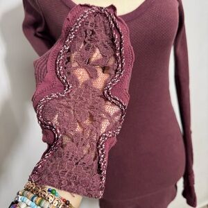 Free People • Crafty Lace Cuff Long Sleeve Thermal Top Burgundy S