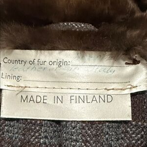 Elegant brown leather coat featuring luxurious fur trim with wool lining. Made in Finland. Vintage but in New condition. Perfect for adding a touch of sophistication to any outfit.