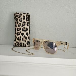 NWOT Quay X Jaclyn Hill Very Busy Sunglasses With Chain & Leopard Case