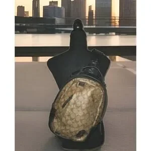 COACH Edge Backpack In Signature Canvas C Tan Leather Unisex Crossbody 13x10x3.5