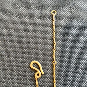 Like new brass snd malachite in prong setting necklace with adjustable length chain (see photo for measurements). Stone is about an inch and a quarter wide