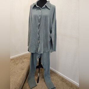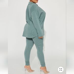 Stylish ribbed pants set in teal. Comfortable and elegant. Perfect for any occasion.