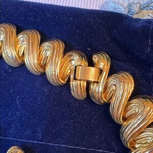 Elegant Gold tone light metal necklace & earrings Set zigzag 🐈⬛