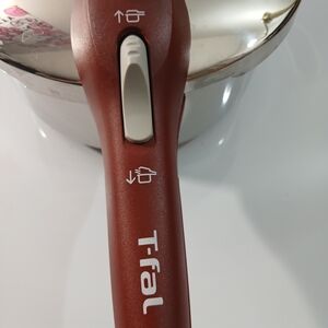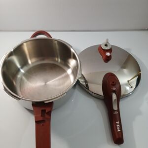 Upgrade your kitchen with the Pressure Cooker. Its sleek silver finish and bold red accents offer both style and efficiency for your cooking needs.