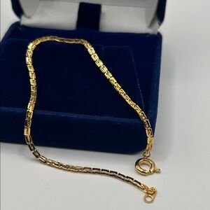 This elegant gold plated bracelet adds a touch of sophistication to any outfit. It has been tested for 14k. There’s no makers mark or stamps. The craftsmanship is excellent and beautiful. It’s been perfectly stored from my father’s collection in the 1990’s. Perfect for any occasion and for all seasons. A unisex style too. Nice one to add to your collection.