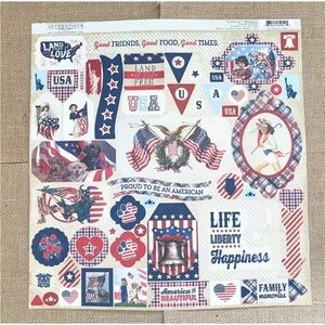 Authentique USA Patriotic Large Sticker Sheet Americana Rustic Junk Journaling