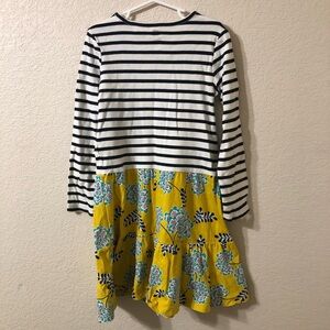 Tea Collection Girls Navy Striped and Yellow Floral Tiered Cotton Dress - Size 8