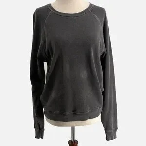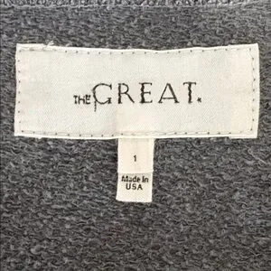 The Great French Terry Sweatshirt in Gray (Washed Black) - Size Small (1). Fair pre-owned condition. There is some fading from wash wear. There are 2 white spots on the front, shown in pics. Priced accordingly. This version does not have the wrist split. 100% cotton. Approximate measurements: 20" pit to pit, 23" length.