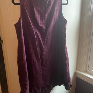 Cute mini dress in plum polka dot. Sleeveless design with ruffle hem. Perfect for any occasion. Size 38 - 38” bust. 33” long. Fully lined.