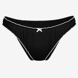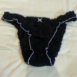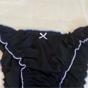 Elegant black bikini bottom with ruffled edges and white trim. Ideal for beach or poolside. New without tags!