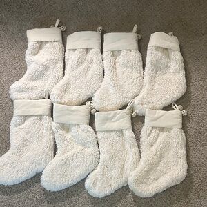 Set of 8 Pottery Barn white sherpa Christmas stockings. Soft and cozy texture. 13x8. Personalized, but you can flip them to the unmonogrammed side. Get for a bargain price.