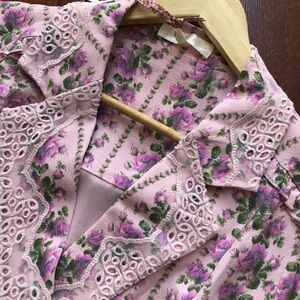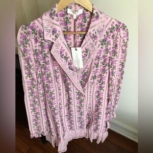 NWT LoveShackFancy Moonstone Double Breasted Crystal Buttons Floral Dress M