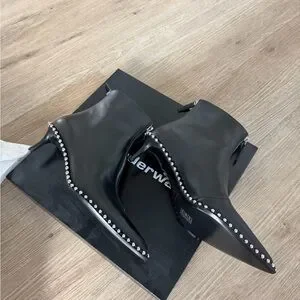 Alexander Wang Black Leather Eri Studded Pointed Toe Ankle Length Boots Size 38