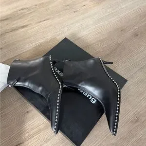 Alexander Wang black leather Eri studded pointed toe ankle length boots size 38