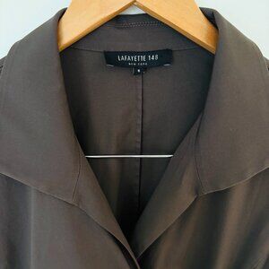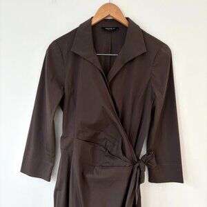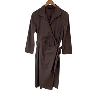 Lafayette 148 NY Brown Dolly Wrap Tie Dress Cotton Stretch Sz 8 Minimalist Chic