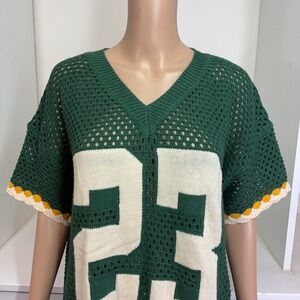 CIDER Green Crochet Knit Jersey Style T Shirt Size M Number 23 Short Sleeve