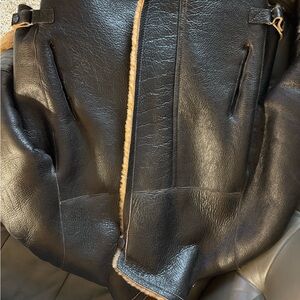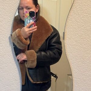 Elegant Black and Tan Shearling Leather Jacket