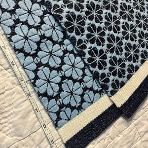 Beautiful Kate Spade knit scarf in blue and black floral pattern.